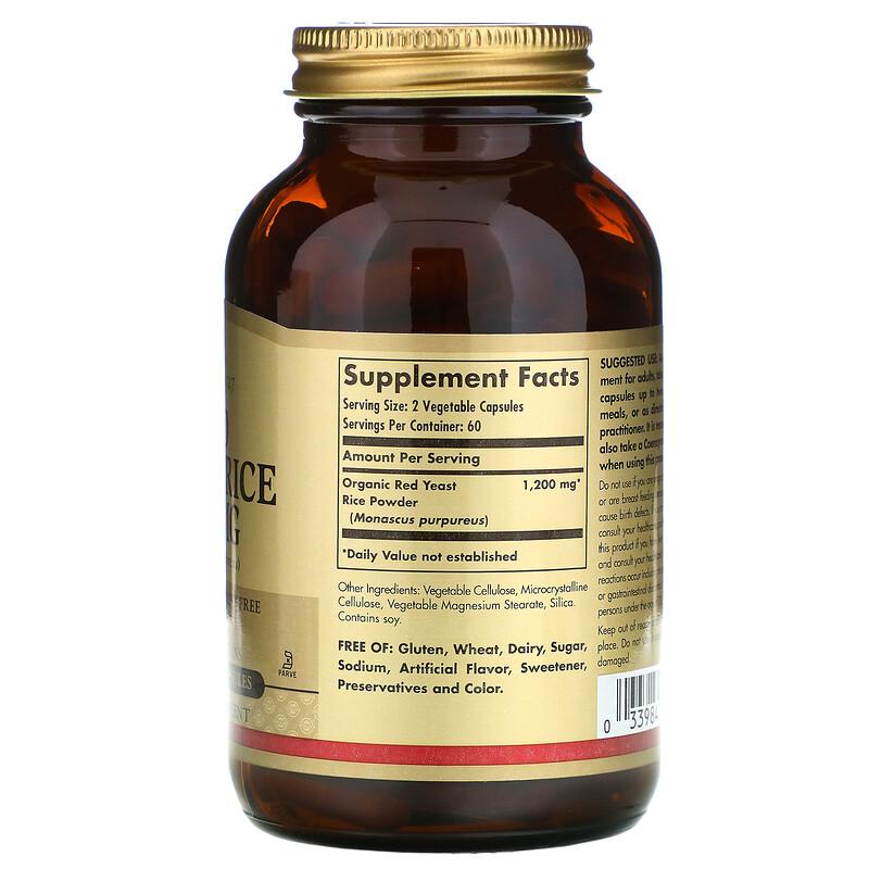 Красный дрожжевой рис, Red Yeast Rice, Solgar, 600 мг, 120 капсул