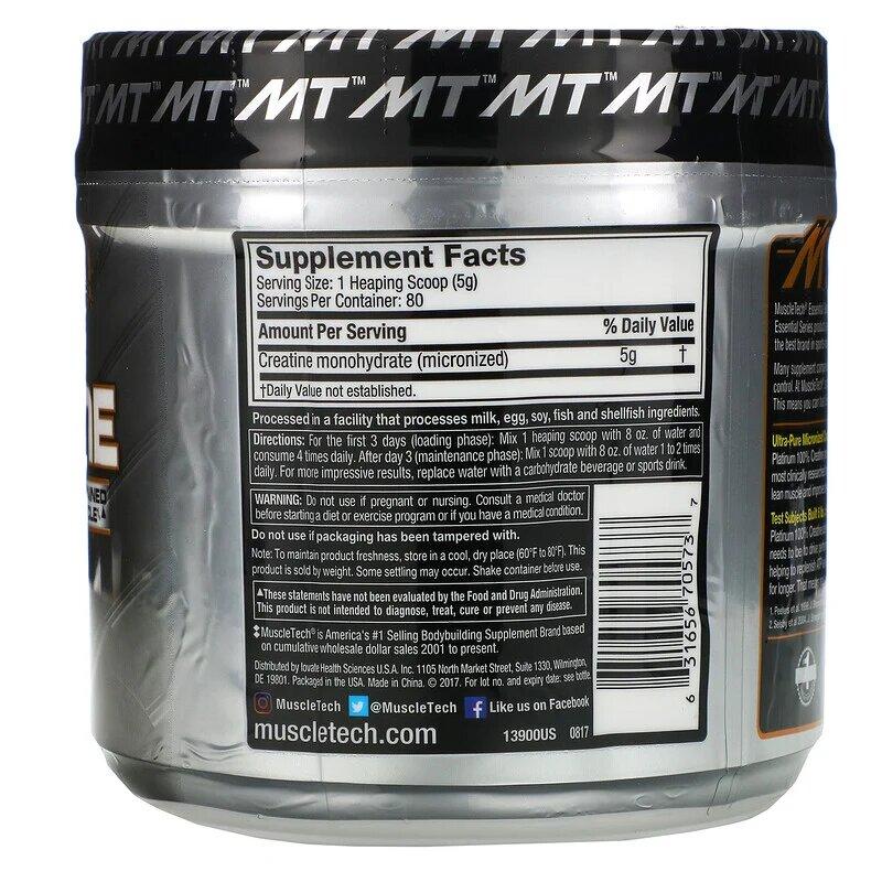 Креатин, без вкусовых добавок, Creatine Platinum 100%, Muscletech, Essential Series, 400 г (14,11 унции)