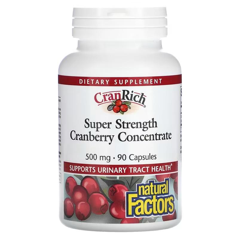 Концентрат клюквы, Super Strength Cranberry Concentrate, Natural Factors, CranRich, 500 мг, 90 капсул