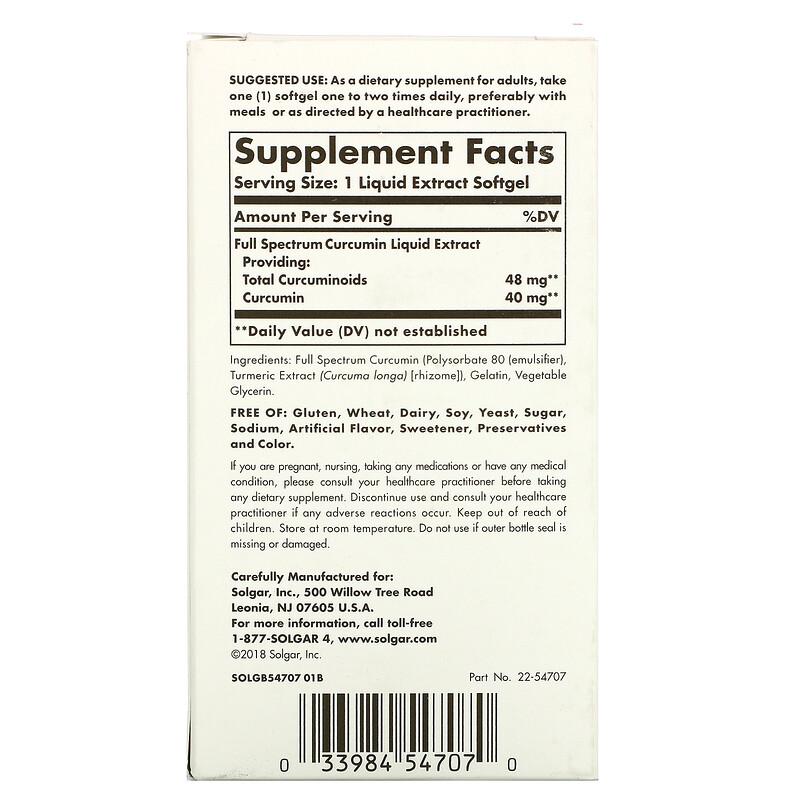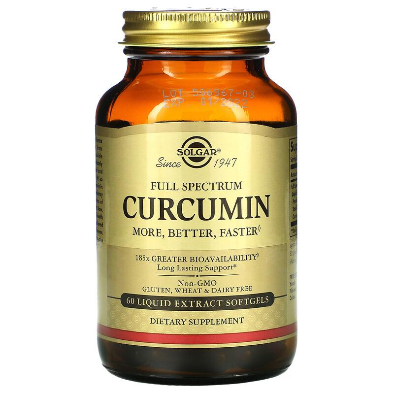 Куркумин, Full Spectrum Curcumin, Solgar, 60 желатиновых капсул с жидким экстрактом