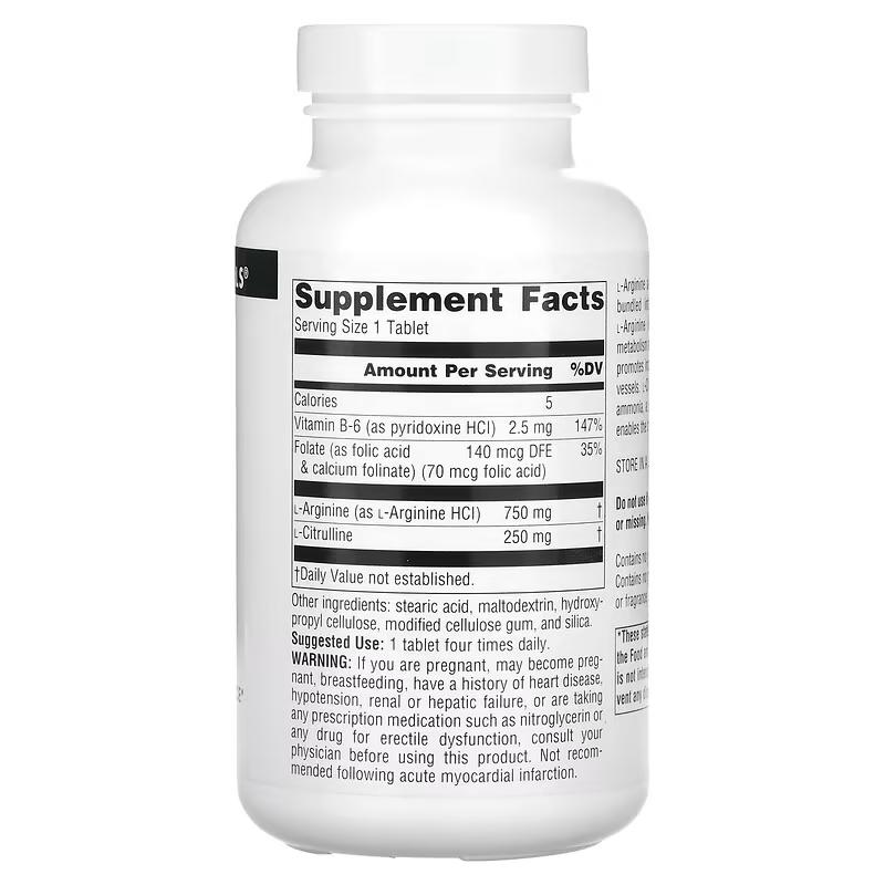 Комплекс L-аргинина и L-цитруллина, l-Arginine l-Citrulline Complex, Source Naturals, 1000 мг, 120 таблеток