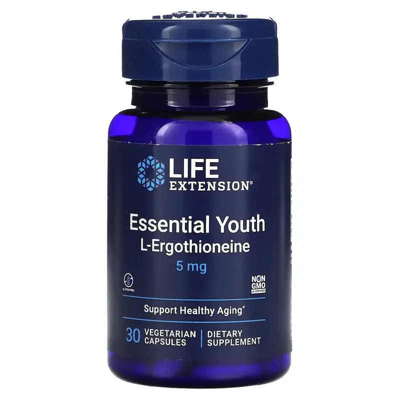 L-эрготионеин, поддержка молодости, Essential Youth L-Ergothioneine, Life Extension, 5 мг, 30 вегетарианских капсул