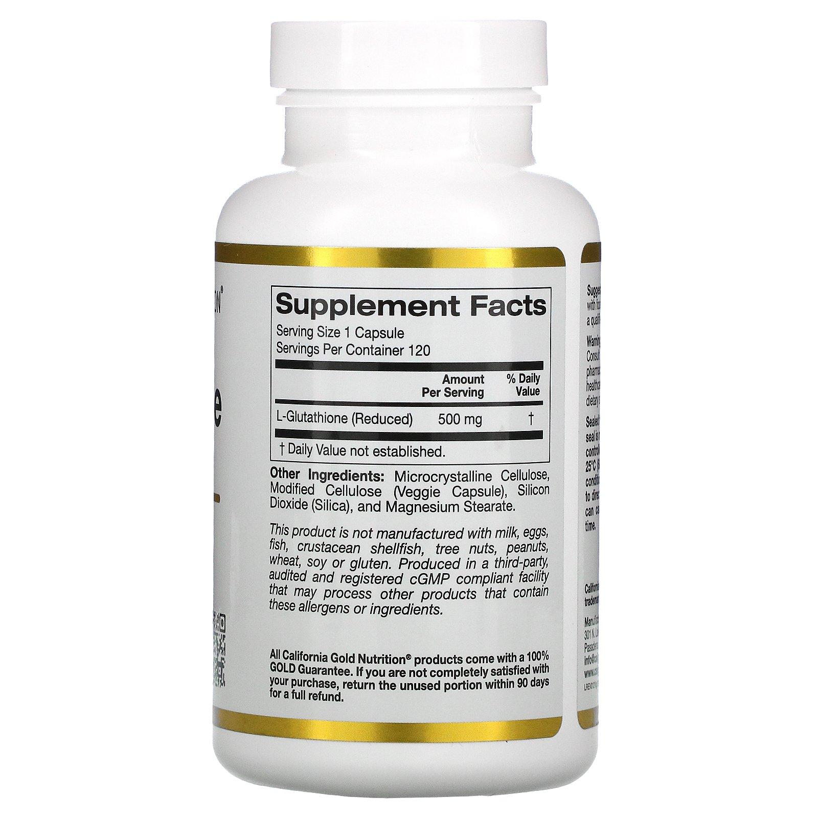L-глутатион, восстановленный, L-Glutathione (Reduced), California Gold Nutrition, 500 мг, 120 растительных капсул