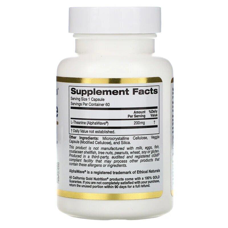 L-теанин, L-theanine, California Gold Nutrition, 200 мг, 60 растительных капсул