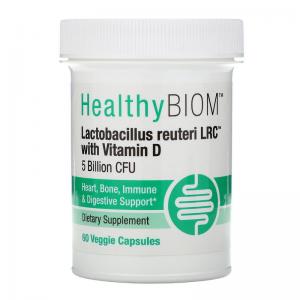 Лактобактерии реутери Lactobacillus Reuteri LRC с витамином D, 5 млрд КОЕ, HealthyBiom, 60 растительных капсул
