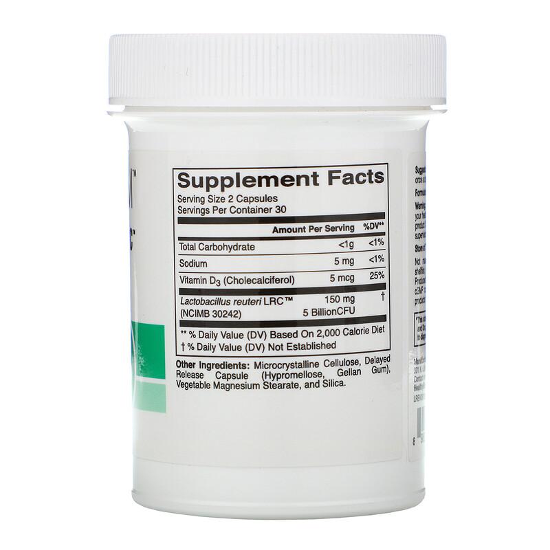Препарат содержит до 5 миллиардов пробиотических бактерий Lactobacillus reuteri LRC штамма NCIMB 30242, а также 5 мкг холекальциферола или витамина D3, получаемого из лишайника. Это 25 процентов от полагающейся суточной нормы. Пробиотические бактерии Lactobacillus Reuteri штамма NCIMB 30242 особенно ценны тем, что способствуют выработке витамине D, благотворно воздействуют не только на желудочно-кишечный тракт, но и на ротовую полость, укрепляют иммунитет, сердце и костную систему.