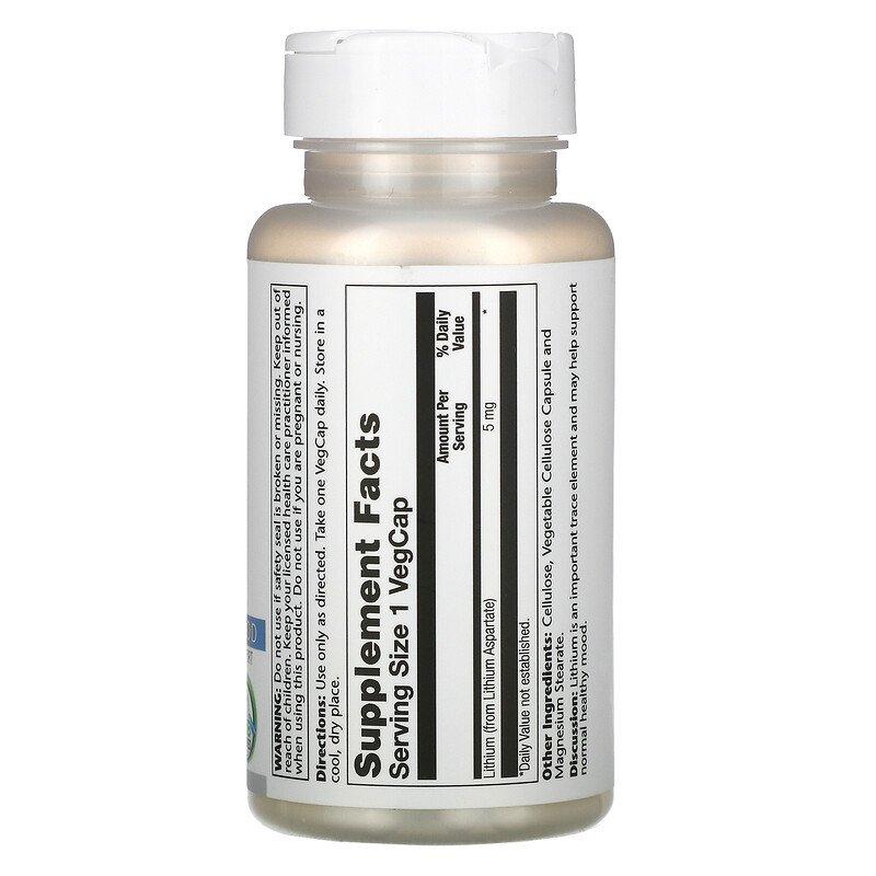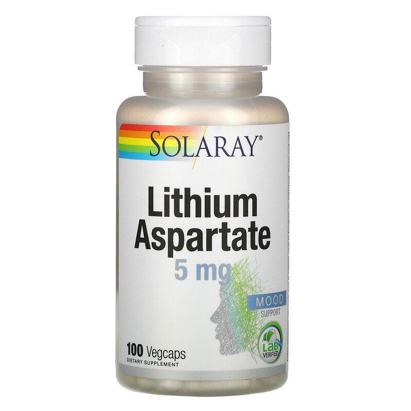 Литий, Lithium Aspartate, Solaray, 5 мг, 100 капсул
