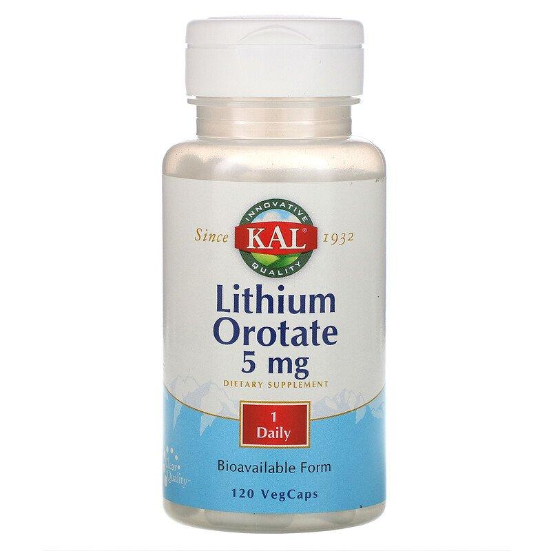 Литий оротат, Lithium Orotate, KAL, 5 мг, 120 вегетарианских капсул