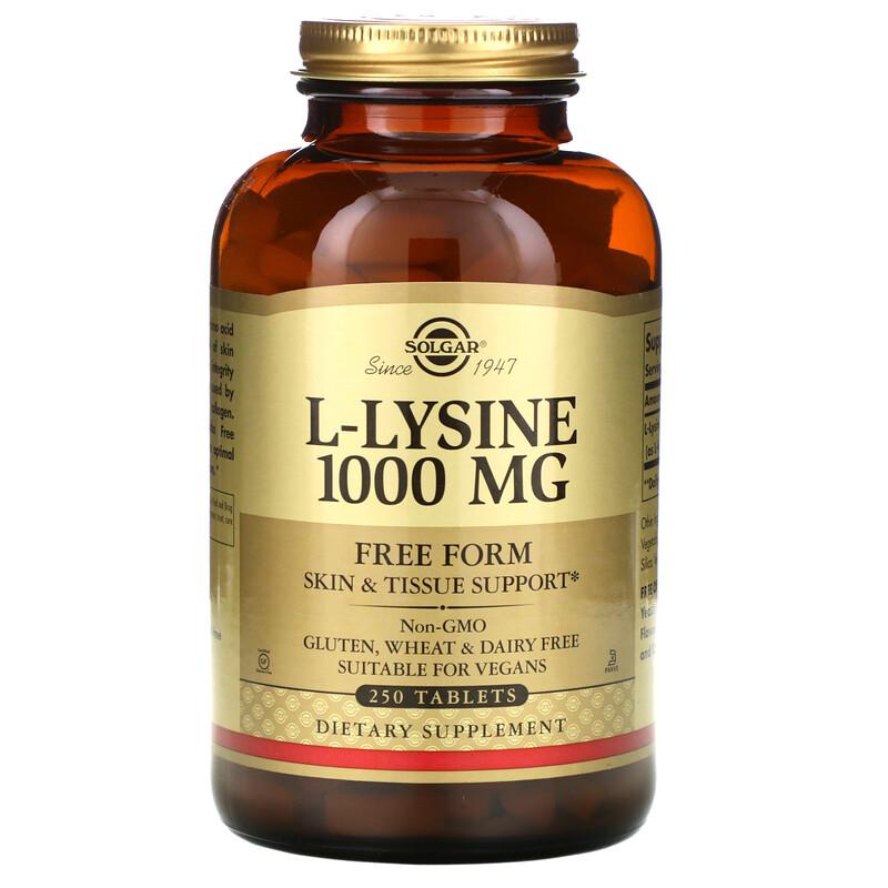 Лизин, L-Lysine, Solgar, 1000 мг, 250 таблеток