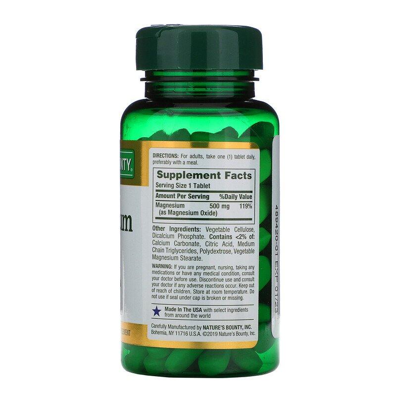 Магний, Magnesium, Nature's Bounty, 500 мг, 100 таблеток в оболочке