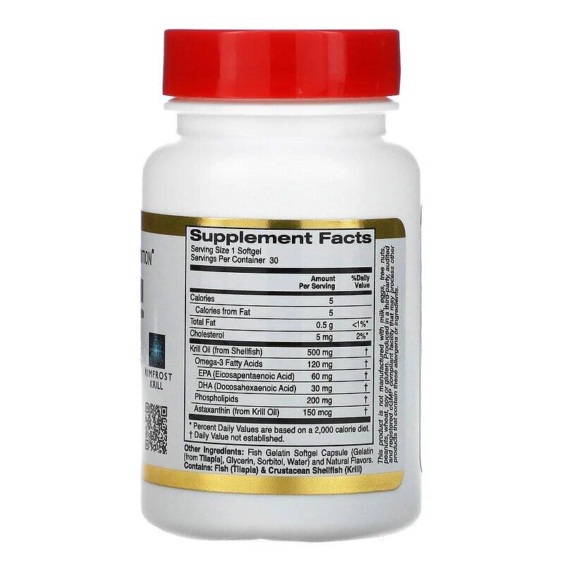 Масло антарктического криля, натуральный ароматизатор клубники и лимона, Antarctic Krill, California Gold Nutrition, 500 мг, 30 мягких капсул с рыбьим желатином