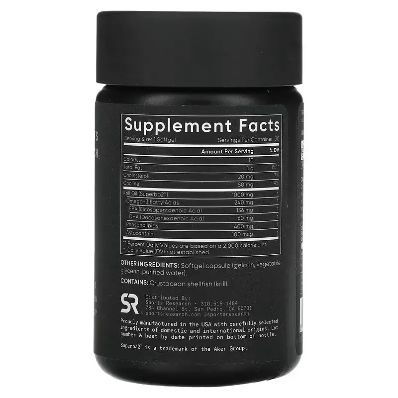 Масло антарктического криля с астаксантином, Antarctic Krill Oil with Astaxanthin, Sports Research, 1000 мг, 60 мягких таблеток