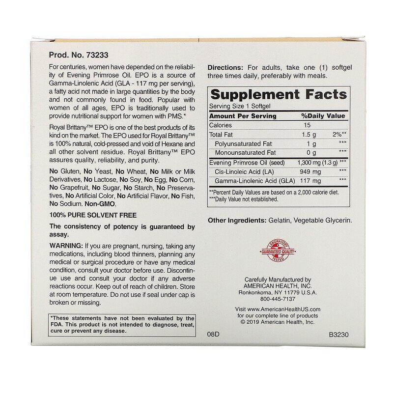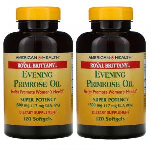 Масло примулы вечерней (EPO), Evening Primrose Oil, American Health, Royal Brittany, 1300 мг, 2 флакона, 120 желатиновых капсул в каждом флаконе