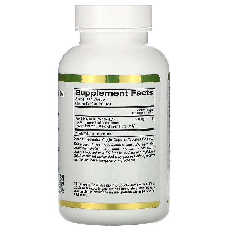 Маточное молочко, концентрированное и сублимированное, Royal Jelly, California Gold Nutrition, 500 мг, 120 вегетарианских капсул