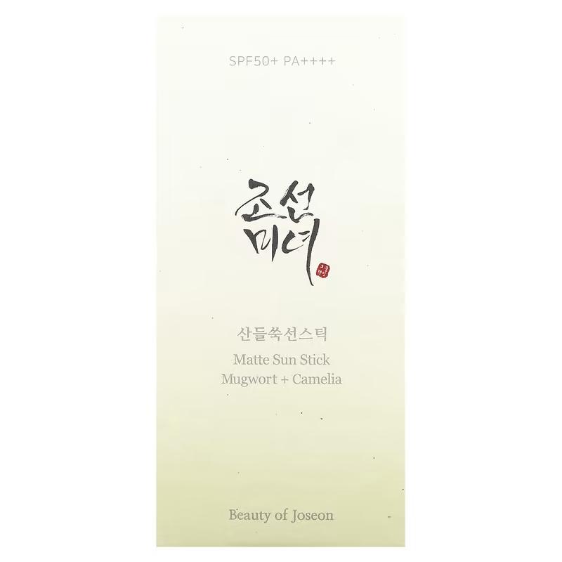 Солнцезащитное средство полынь и камелия, Matte Sun Stick Mugwort Camelia, SPF50 + PA ++++, Beauty of Joseon, 18 г