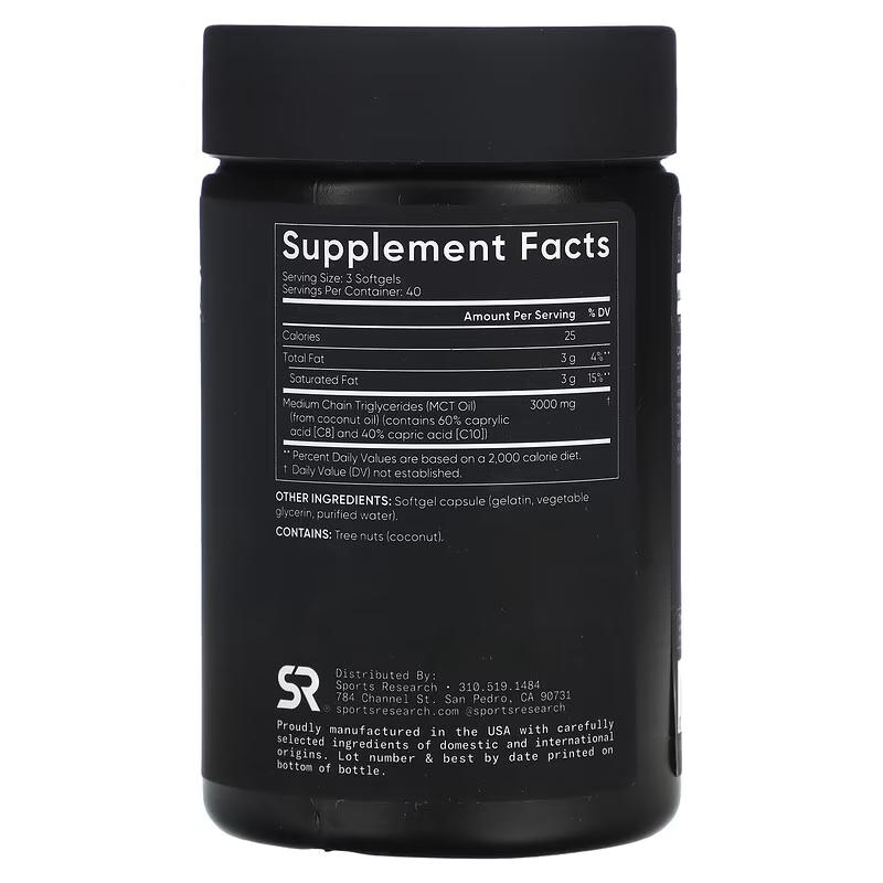 Масло MCT, MCT Oil, Sports Research, 3000 мг, 120 капсул (1000 мг в 1 капсуле)
