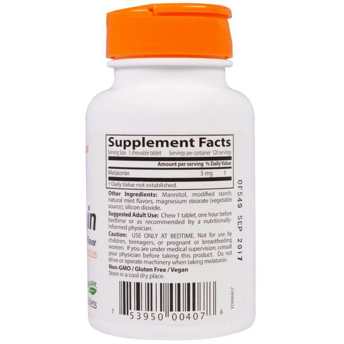 Мелатонин, Doctor's Best, мятный вкус, 5 мг, 120 жевательных таблеток