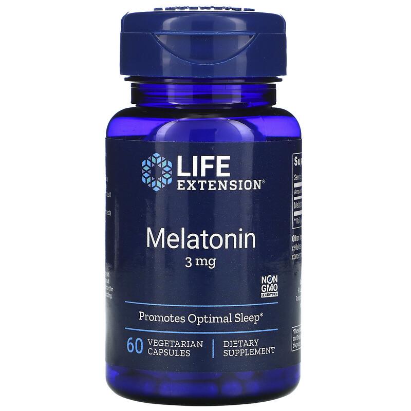 Мелатонин, Melatonin, Life Extension, 3 мг, 60 вегетарианских капсул