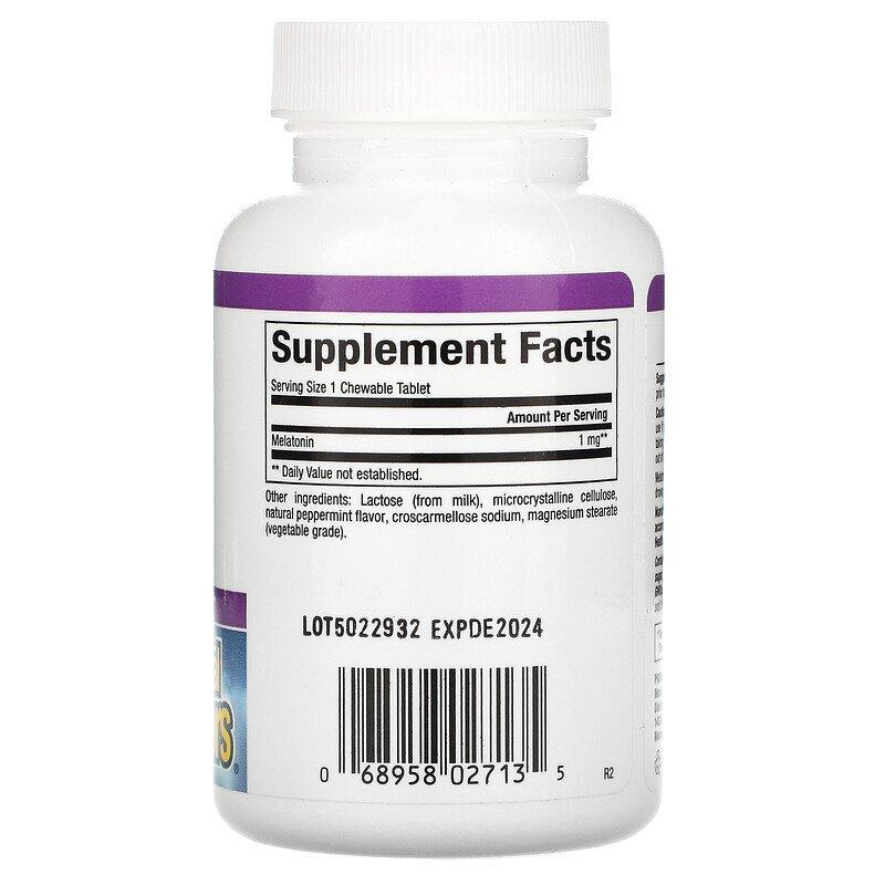 Мелатонин, Melatonin, Natural Factors, 1 мг, 90 жевательных таблеток