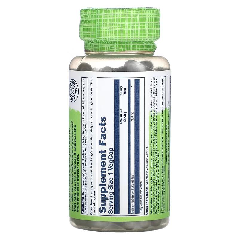 Коровяк, Mullein, Solaray, 330 мг, 100 вегетарианских капсул