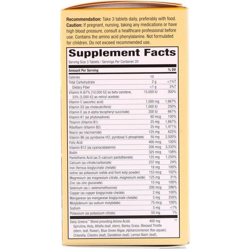 Alive Men's Max3 Daily - самая мощная и полная добавка от Nature's Way для мужчин, которые хотят дополнить свои ежедневные потребности в витаминах высококачественным продуктом. Питательный комплекс разработан на основе порошковых смесей, произведенных из натуральных компонентов. Благодаря высокой дозировке и широкому спектру ингредиентов он идеален для всесторонней поддержки здоровья, а также противодействия усталости, истощению и снижению работоспособности:
