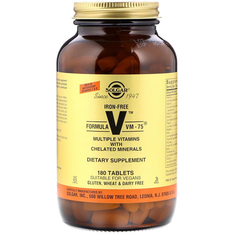Мультивитамины без железа, формула VM-75 (Multiple Vitamins), Solgar, 180 таблеток