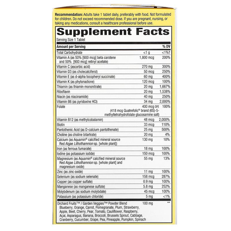 | Витамин А (50% [5000 МЕ] в форме ацетата витамина А и 50% [5000 МЕ] в форме бета-каротина) | 10 000 МЕ | 200% |