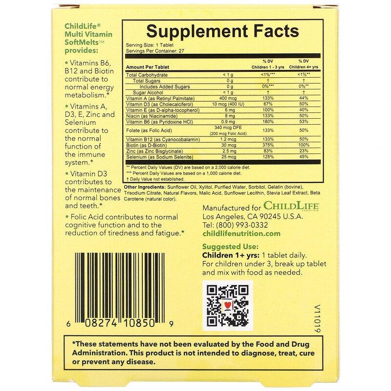 Мультивитамины со вкусом натурального апельсина, Multi Vitamin SoftMelts, ChildLife, 27 таблеток