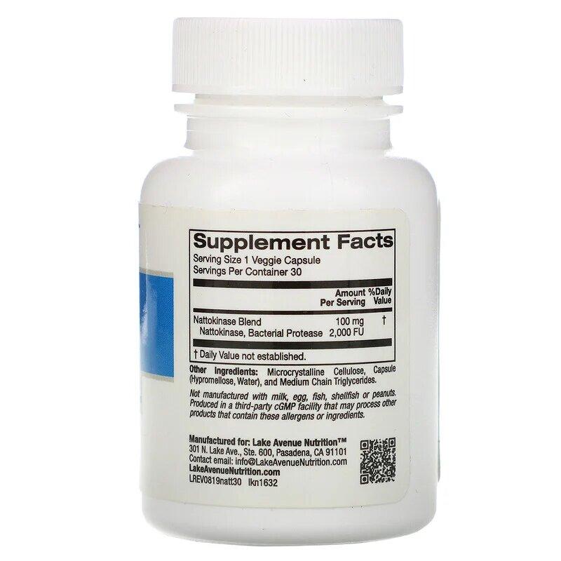 Наттокиназа, протеолитический фермент, Nattokinase, Proteolytic Enzyme, Lake Avenue Nutrition, 2000 МЕ, 30 вегетарианских капсул