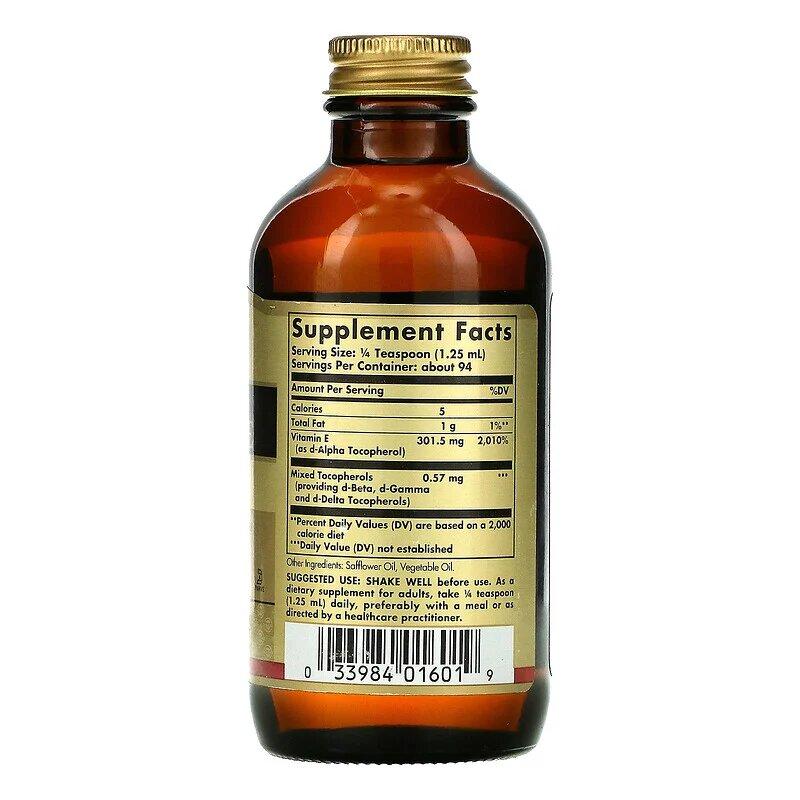 Натуральный жидкий витамин E, Liquid vitamin E, Solgar, 118 мл (4 жидк. унции)