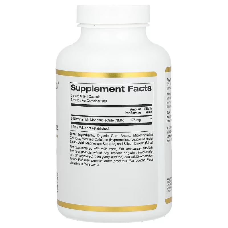 California Gold Nutrition от компании NMN, 175 мг, 180 вегетарианских капсул — это пищевая добавка, содержащая никотинамид мононуклеотид (NMN). NMN — предшественник NAD+, молекулы, которая играет важную роль в клеточном метаболизме. NAD+ помогает клеткам вырабатывать энергию, а также поддерживает здоровье клеток и тканей.
