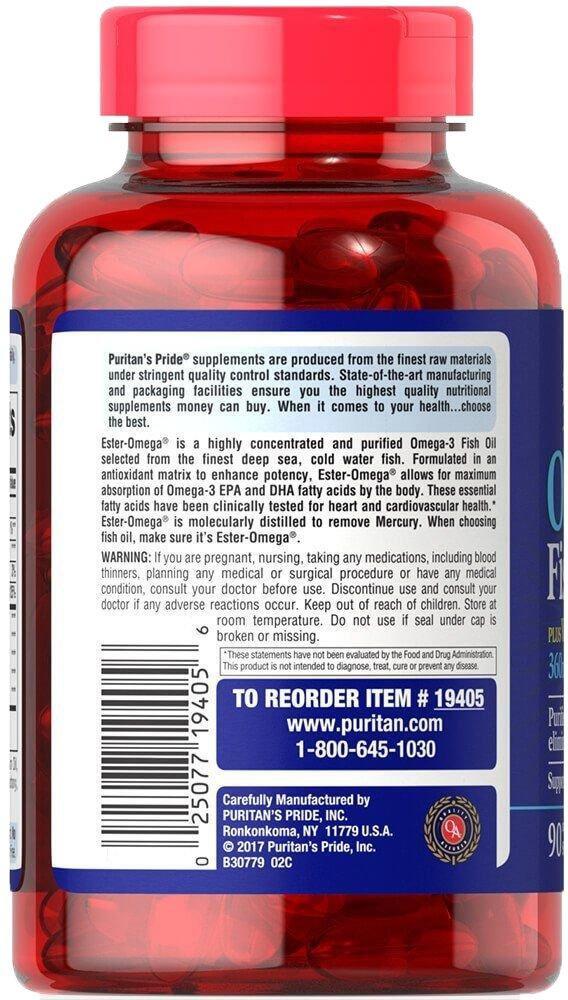 Омега-3 рыбий жир + витамин Д3, Omega-3 Fish Oil of Vitamin D3, Puritan's Pride, 1200/1000 МЕ, 90 капсул