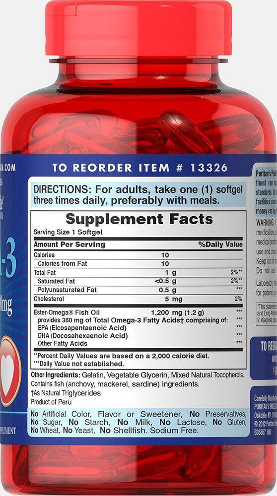 Омега-3 рыбий жир, Omega-3 Fish Oil, Puritan's Pride, 1200 мг, 360 мг активного, 100 капсул