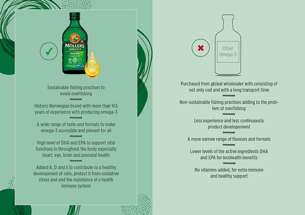 Рыба из Норвегии считается самой лучшей. Норвежский рыбный жир от компании Moller’s, полученные из норвежской рыбы, являются дополнительным источником ненасыщенных жирных кислот омега-3, а также витаминов D3, A и E.