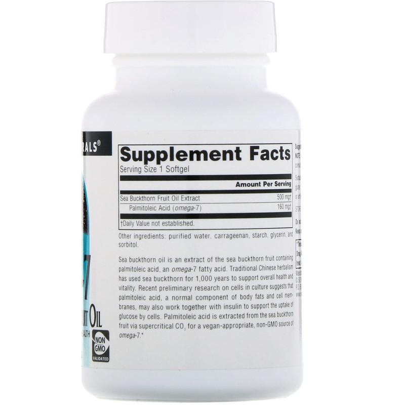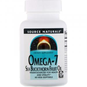Омега-7, фруктовое масло облепихи, Omega-7, Sea Buckthorn Fruit Oil, Source Naturals, 60 растительных мягких желатиновых капсул