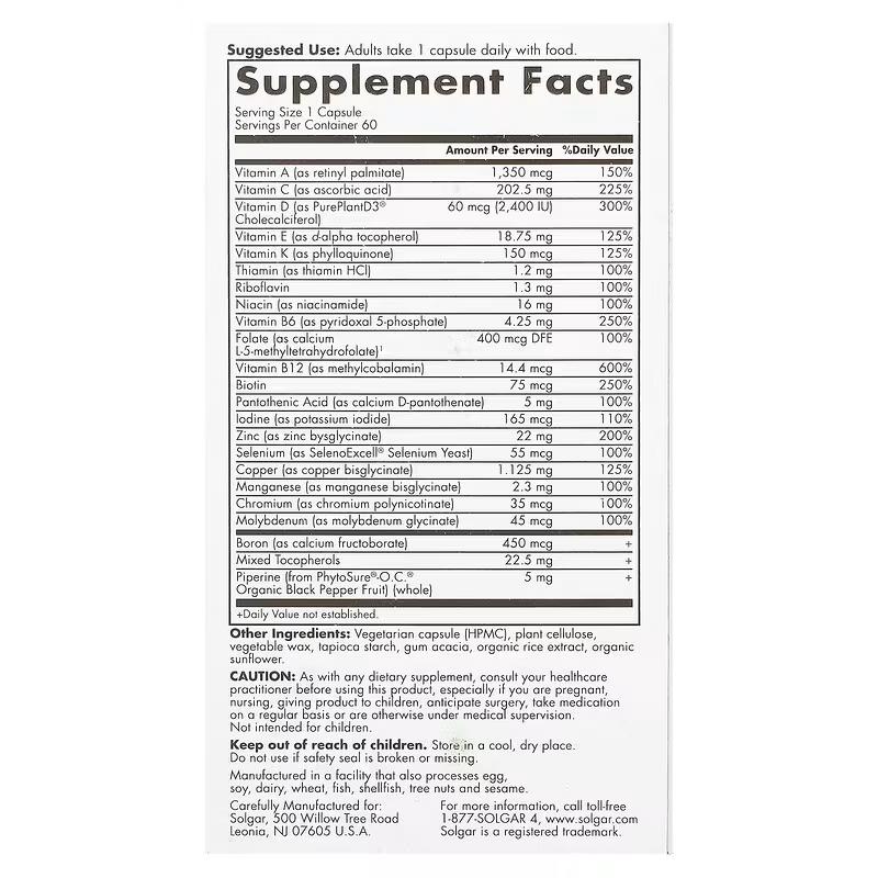 Мультивитаминный комплекс One Daily Men's Multi 50+ от Solgar является оптимально сбалансированным решением для мужчин в возрасте 50 лет и старше. Этот продукт обогащен широким ассортиментом витаминов и минералов, которые критически важны для поддержания оптимального уровня здоровья и жизненной энергии в более зрелом возрасте. Каждая упаковка содержит 60 капсул, предназначенных для курса приема на протяжении двух месяцев.