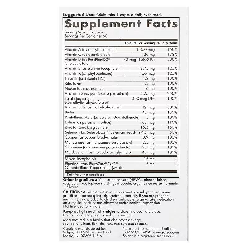 One Daily Men's Multi от Solgar изготовлены с использованием только высококачественных, натуральных ингредиентов, без использования искусственных красителей, ароматизаторов или консервантов. Они являются безопасным и эффективным способом улучшить ваше общее состояние здоровья и благополучие.