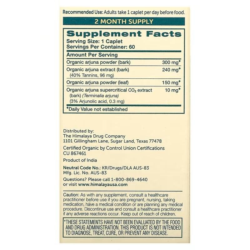 Арджуна, кардиотоническое средство, Organic Arjuna, Himalaya, 60 капсул