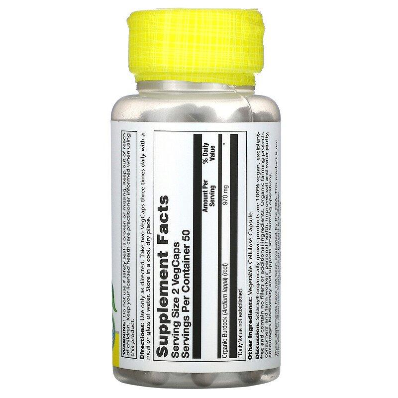 Органически выращенный лопух, Organically Grown Burdock Root, Solaray, 485 мг, 100 капсул
