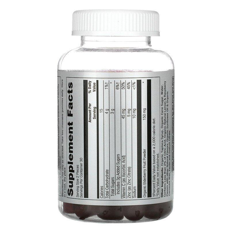 Органические жевательные конфеты из бузины с цинком и витамином C, натуральный лимон и малина, Organic Elderberry Gummies With Zinc & Vitamin C, Solaray, 60 жевательных конфет