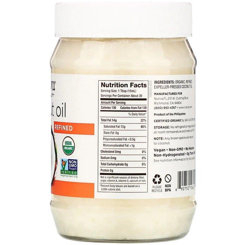 Органическое кокосовое масло, рафинированное, Nutiva, 15 жидких унций (444 мл)