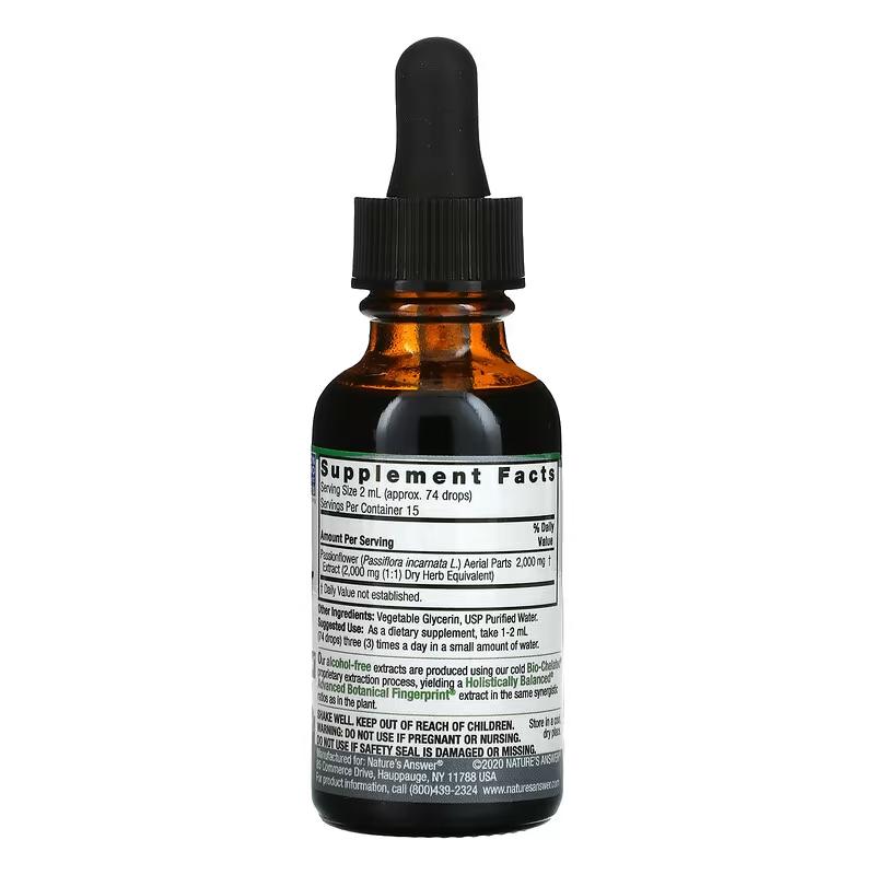 Надземные части пассифлоры, жидкий экстракт, без спирта, Passionflower Aerial Parts Fluid Extract Alcohol Free, Nature's Answer, 2000 мг, 30 мл