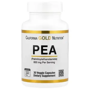 Препарат ПЭА от California Gold Nutrition — это натуральная добавка, которая помогает организму справляться с болью, воспалением и переутомлением. Пальмитоилэтаноламид — это вещество, которое наш организм вырабатывает сам, чтобы снизить боль и защитить нервные клетки. Когда его не хватает, появляются усталость и дискомфорт. Прием добавки помогает вернуть телу равновесие, снять напряжение и улучшить самочувствие.