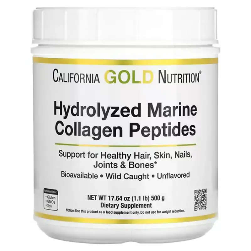 Пептиды из морского коллагена премиального качества, Hydrolyzed Marine Collagen Peptides, California Gold Nutrition, 500 г
