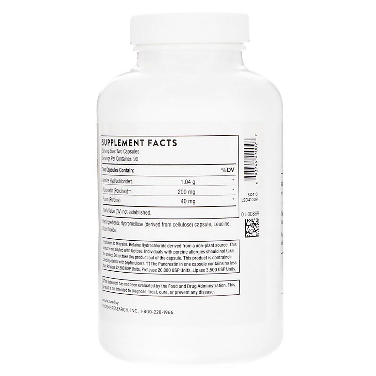 Пищеварительные ферменты (бетаин / пепсин / панкреатин), Digestive Enzymes, Thorne Research, 180 капсул