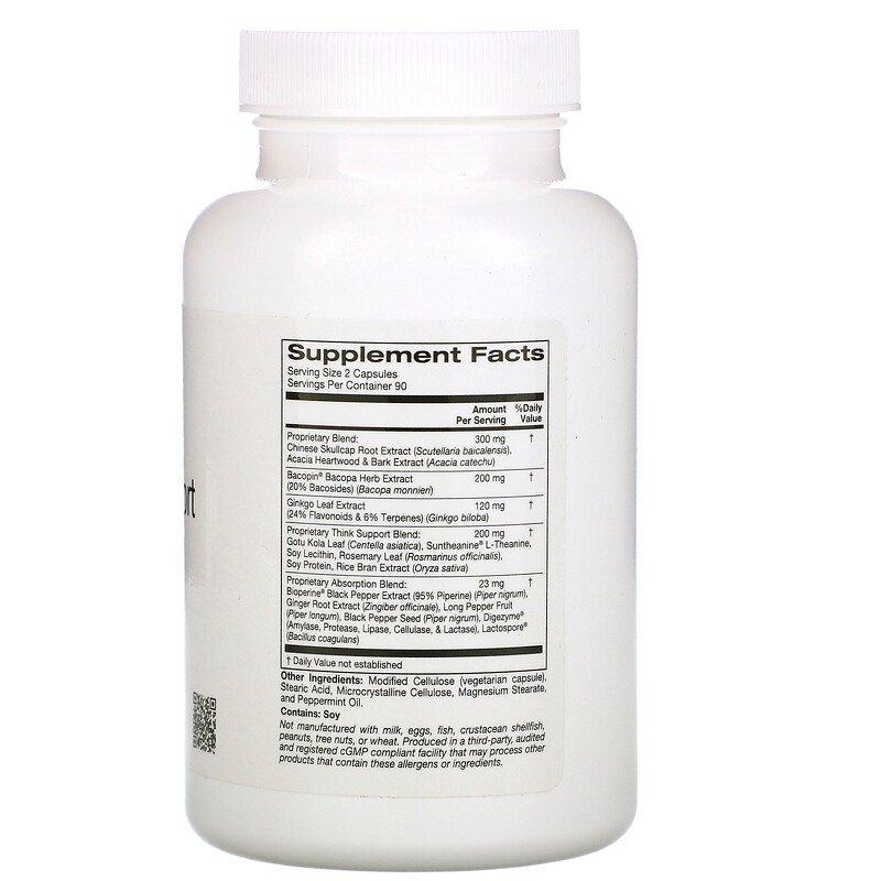 Уникальный комплекс, поддерживающий когнитивные функции и способствует улучшению памяти от Zoi Research на основе растительных ингредиентов. ZOI Research на протяжении длительного времени исследует растительные ингредиенты китайского корня шлемника, сердцевины акации, Бакопа Bacopin®, Гинкго билоба, а также L-теанин Suntheanine® и включает их в свой комплекс, который необходим для поддержания мыслительной функции человека. Вся продукция запатентована, а сам комплекс производится на предприятии, у которого есть регистрация cGMP.