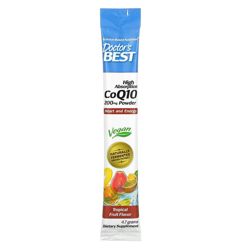 Порошок с высоким содержанием коэнзима Q10, тропические фрукты, 200 мг, Doctor's Best, 30 упаковок в виде порошка в стиках по 4,7г каждая