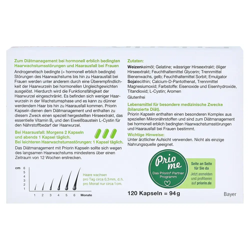 Приорин от выпадения волос - это инновационный препарат, разработанный компанией Bayer для борьбы с проблемой выпадения волос у мужчин и женщин. Каждая упаковка содержит 120 капсул, которые состоят из специально подобранных компонентов, таких как экстракт пальмы сереноа, витамин В6 и цинк, которые работают в синергии, чтобы укрепить и стимулировать рост волос.