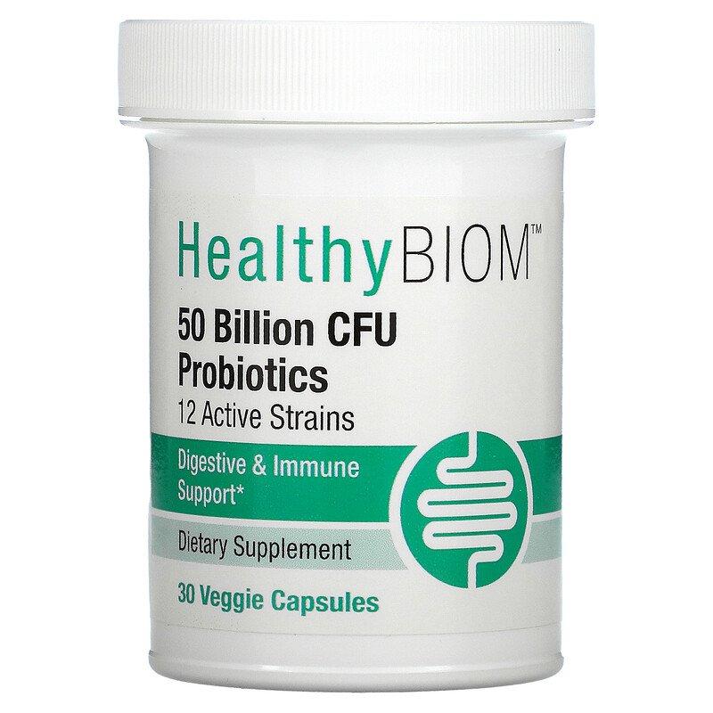 Пробиотики, 50 млрд КОЕ, 50 Billion CFU Probiotics, HealthyBiom, 30 растительных капсул