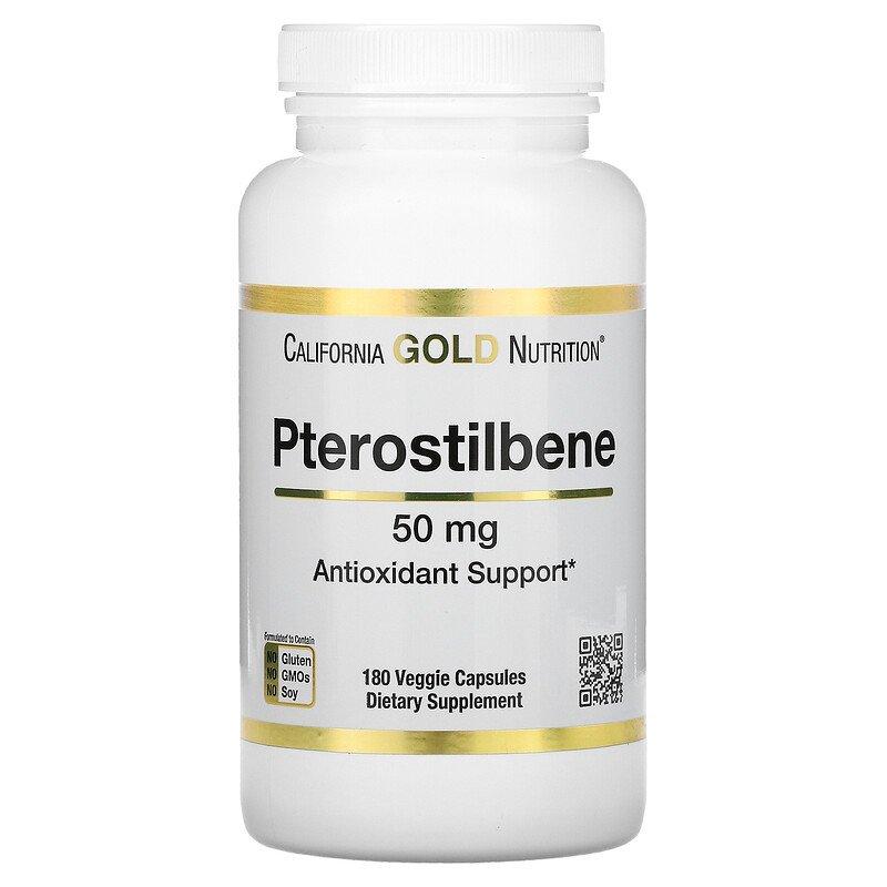 Птеростильбен, Pterostilbene, California Gold Nutrition, 50 мг, 180 растительных капсул